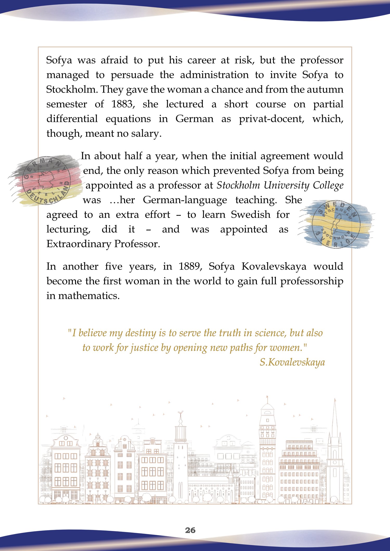 Based on the biographies of I. Newton, S. Kovalevskaya, Gösta Mittag-Leffler, M. Curie, C. Chaplin, J.R.R. Tolkien, K. Robinson.